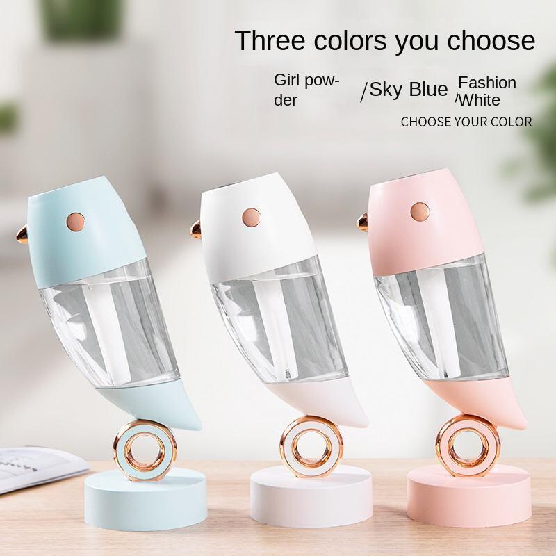 This innovative humidifier combines practical air hydration with aesthetic appeal, featuring a compact pod-like design that serves as both functional appliance and decorative accent. Available in soft muted tones including pale blue, the unit features a translucent lower chamber that illuminates during operation, complemented by a matte upper body and intuitive metallic control button.